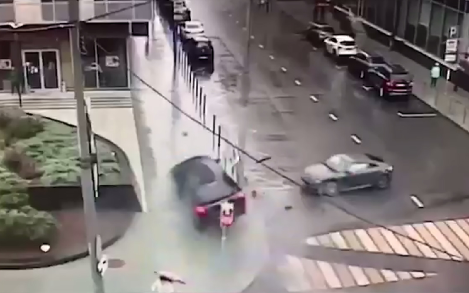 Авария произошла еще в минувшую пятницу, но известно о ней стало только сейчас. На видео, опубликованном телеграм-каналом Mash, заметно, как Mercedes-Benz GLE, игнорируя запрещающий сигнал светофора, пытается пересечь перекресток на 1-й Брестской улице и Большой Грузинской, но врезается в Audi TT. От удара кроссовер вылетает на тротуар, на котором по счастливой случайности не было пешеходов, а купе разворачивает на 360 градусов.