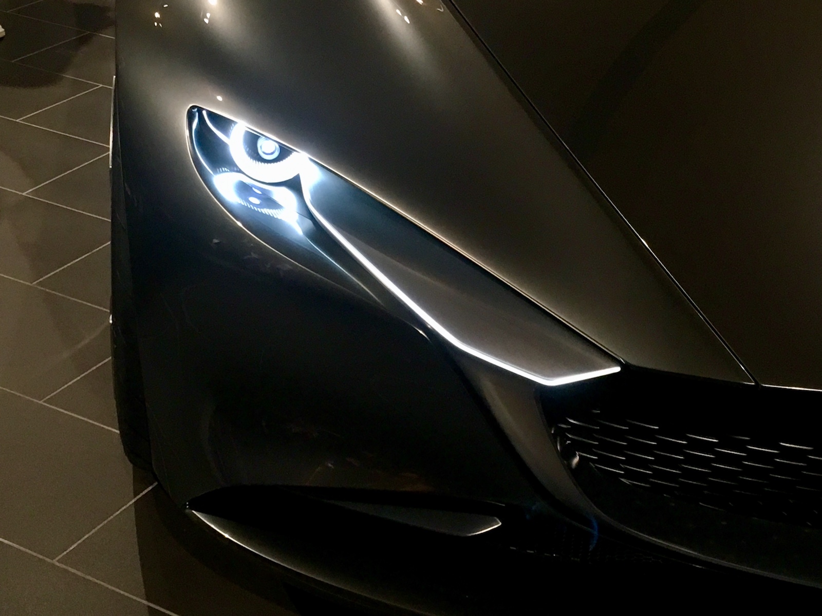 Представлял концепт лично шеф-дизайнер японской марки Икуо Маэда. Он напомнил, что фирменная философия Kodo ведет историю с 2010 года, когда появился первый концепт Shinari (к слову, тоже четырехдверное купе). С тех пор маздовцы здорово поиграли с формами и… светом. Маэда-сан, рассказывая о новой попытке «вдохнуть жизнь в автомобиль», проводил параллели с разными видами искусства.