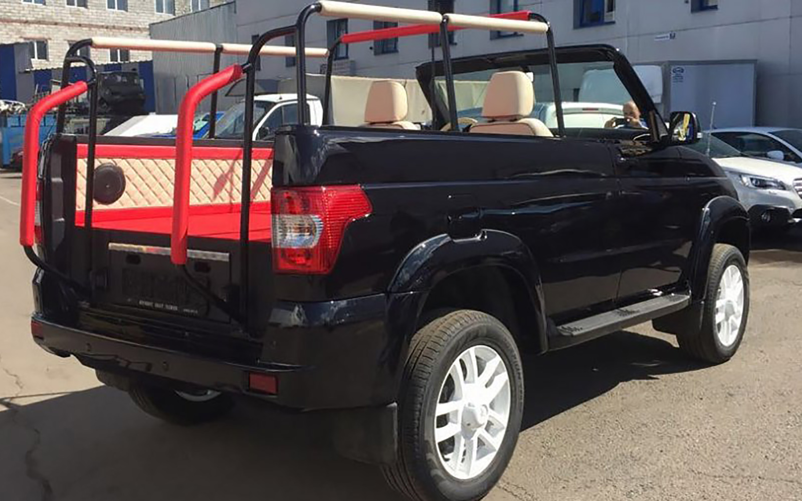Пока предприятие готово наладить выпуск спецмодификаций кабриолета на базе Патриота по заказам оборонных ведомств различных государств для церемониальных мероприятий. Такие машины имеют в салоне поручни для устойчивости пассажиров, особую отделку интерьера и окраску кузова.