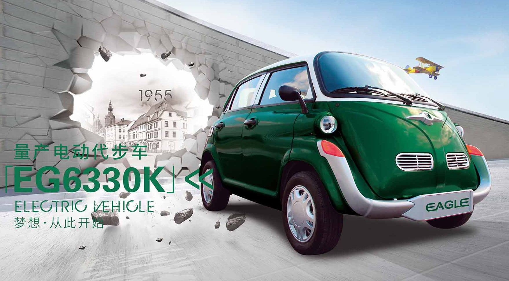 Теперь же Suzhou Eagle показала малолитражку EG6330K с дизайном а-ля Isetta, а точнее а-ля BMW 600, представляющий собой более поздний вариант культового автомобиля-«яйца». Китайские стилисты добросовестно скопировали у исторического прототипа запоминающийся образ с трубами фар по бокам и усами-бамперами, однако фронтальной калитки, объединенной с ветровым стеклом, у новодела нет, вместо нее – стандартные четыре двери.