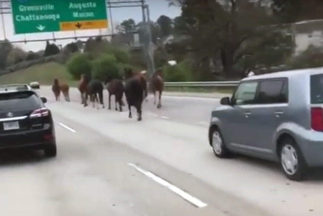 Странную картину наблюдали водители возле северного торгового центра DeKalb, расположенного недалеко от шоссе 78. Движение парализовал табун из десяти лошадей, которые трусили посередине проезжей части.
