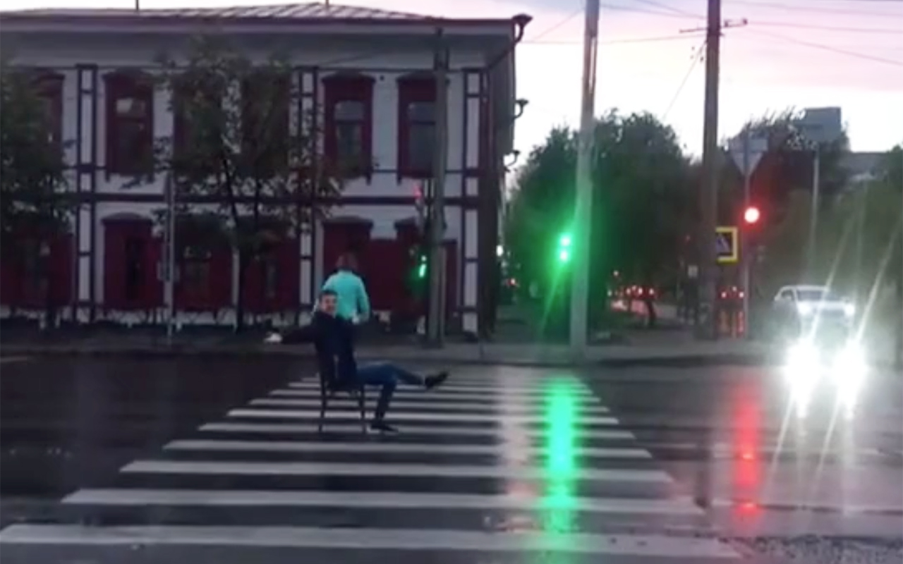 В паблике «Жесть Красноярска» соцсети ВКонтакте появилось странное видео: загорается зеленый сигнал светофора, молодой человек выскакивает на зебру, ставит стул, садится на него и ждет зеленого. Формально, он никому не мешает, разве что пешеходам. Но идиотизм самой затеи и желание покрасоваться ради отметки «Нравится» вызвал негодование пользователей.