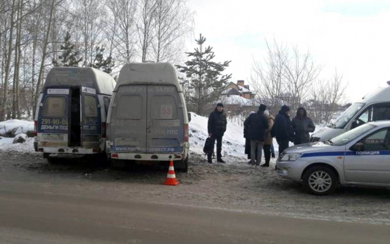 В Заельцовском районе Новосибирска произошла авария двух маршрутных такси. Один из автобусов выехал на полосу встречного движения, где столкнулся с другим автобусом, перевозившим пассажиров.