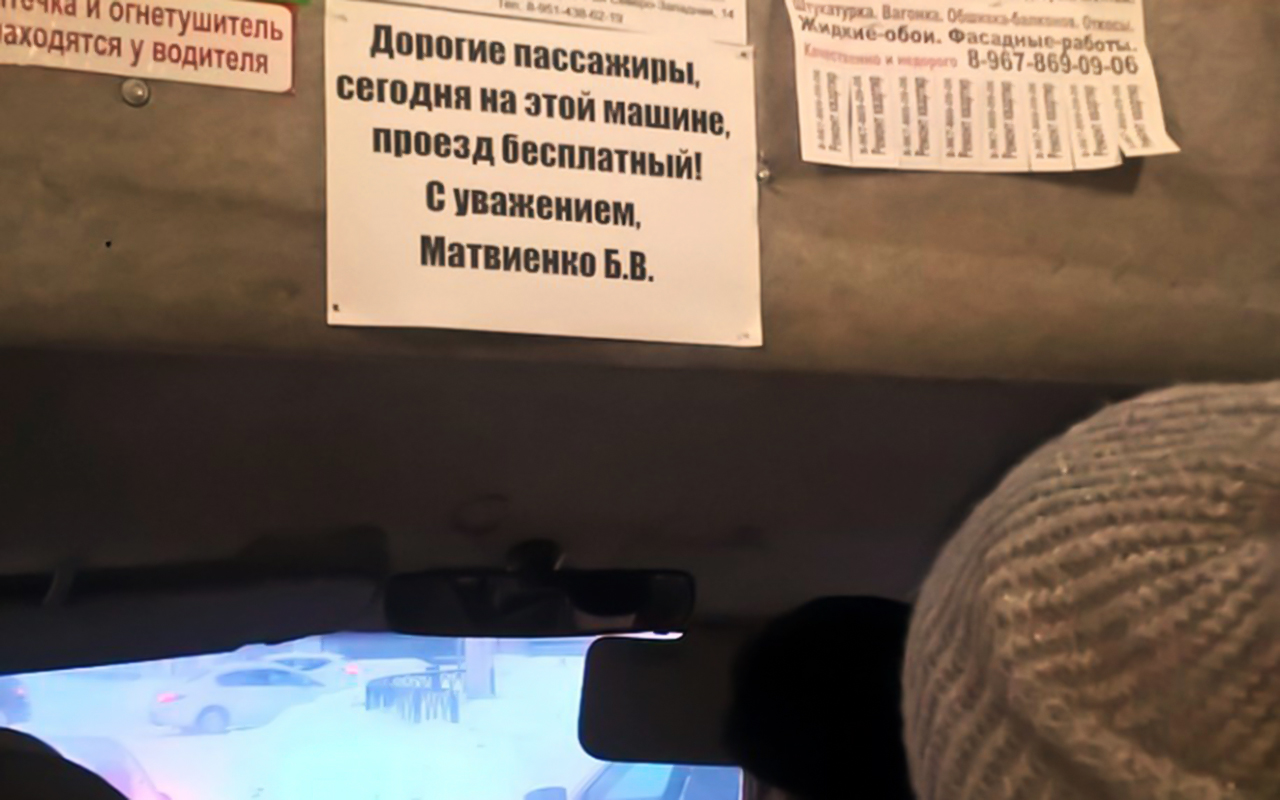 Фотографию из его маршрутки женщина разместила в соцсети. Пользователи долго гадали, что же такое произошло с водителем. Но местные СМИ выяснили, что зовут альтруиста Хаким Усманалиев — каждую пятницу в свой выходной день утром он действительно бесплатно возит горожан. Хаким мусульманин и до 12-часовой молитвы ему важно сделать доброе дело. Вот такое доброе дело он и придумал. Всем хорошо, да и владелец компании возражать не стал.