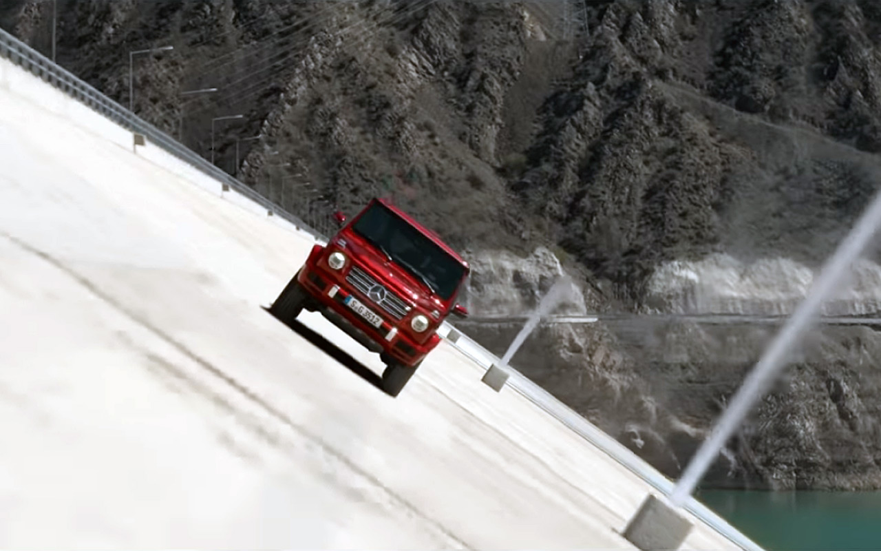 Рискованный трюк совершил Mercedes-Benz G 350d, который без проблем проехал по бетонному склону. На вопрос «зачем?» в компании ответили просто: «Потому что он может это сделать, может достичь мест, недоступных другим, даже в их самых смелых мечтах». Интересно, это они о ком сейчас?
