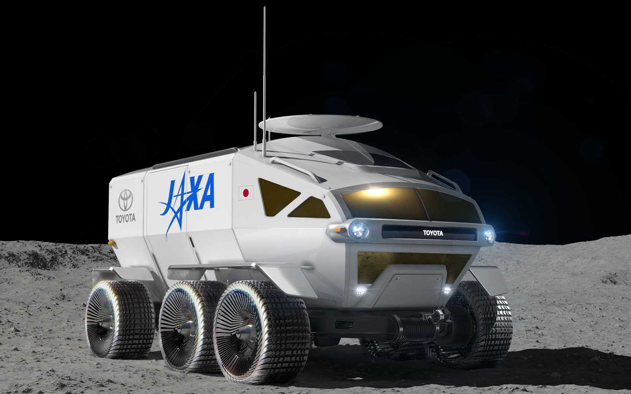 Toyota заключила соглашение с Японским агентством аэрокосмических исследований (JAXA) о начале исследований и разработок по созданию нового вездехода для Луны и, возможно, Марса. Пилотируемый герметичный автомобиль оснащен радиаторной решеткой (зачем она в вакууме?) как у FJ Crusier и похож на автомобиль с иллюстрации к какой-то научно-фантастической книге. Но именно такой вездеход Toyota и намерена построить.