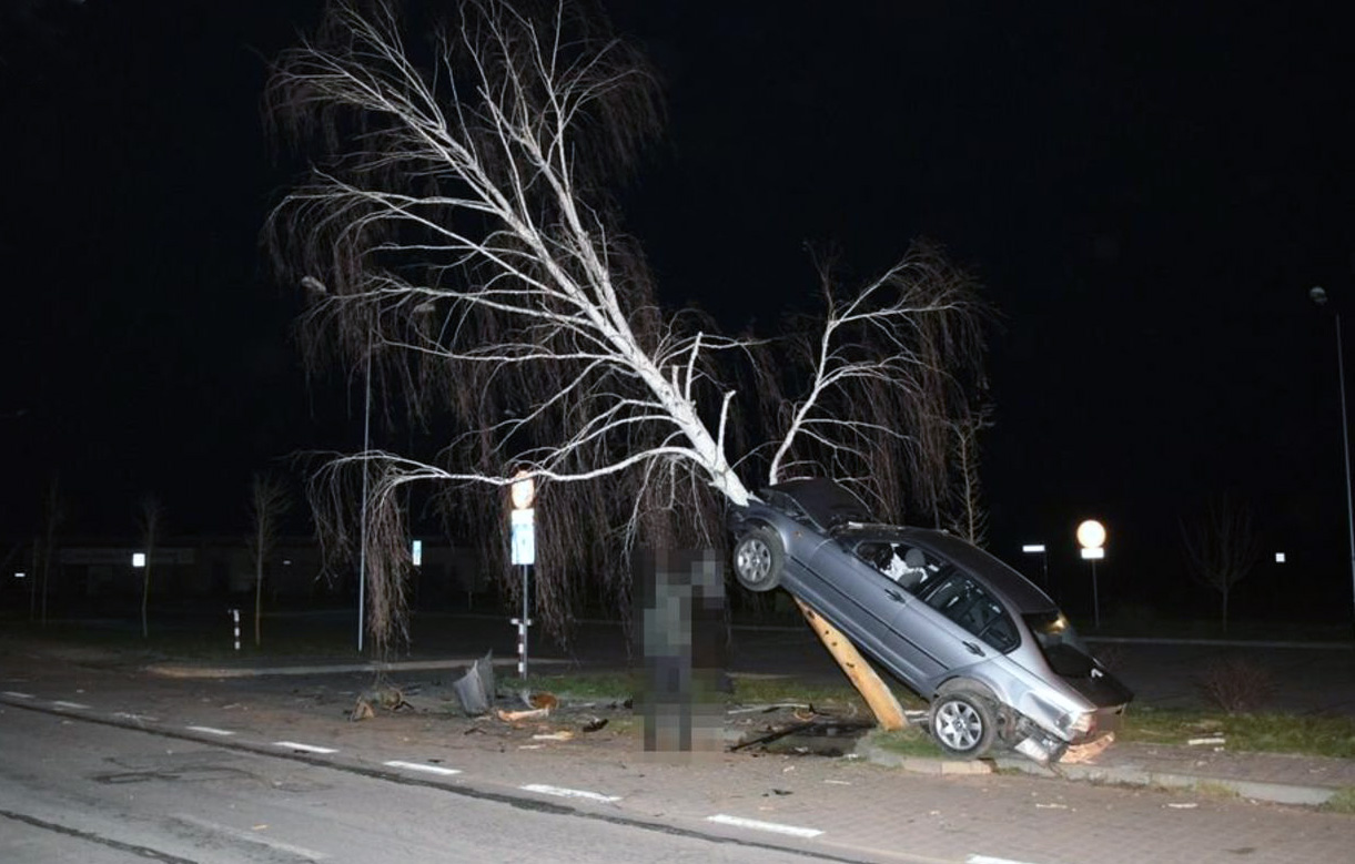 Необычное событие произошло в польском городке Януве Любельском. Сотрудники местной полиции получили информацию, что на одной из улиц машина висит на дереве. Прибыв на место, стражи порядка обнаружили, что BMW действительно находится на стволе дерева под углом приблизительно 45 градусов. Со стороны это выглядело так, будто автомобиль пытался залезть на березу.