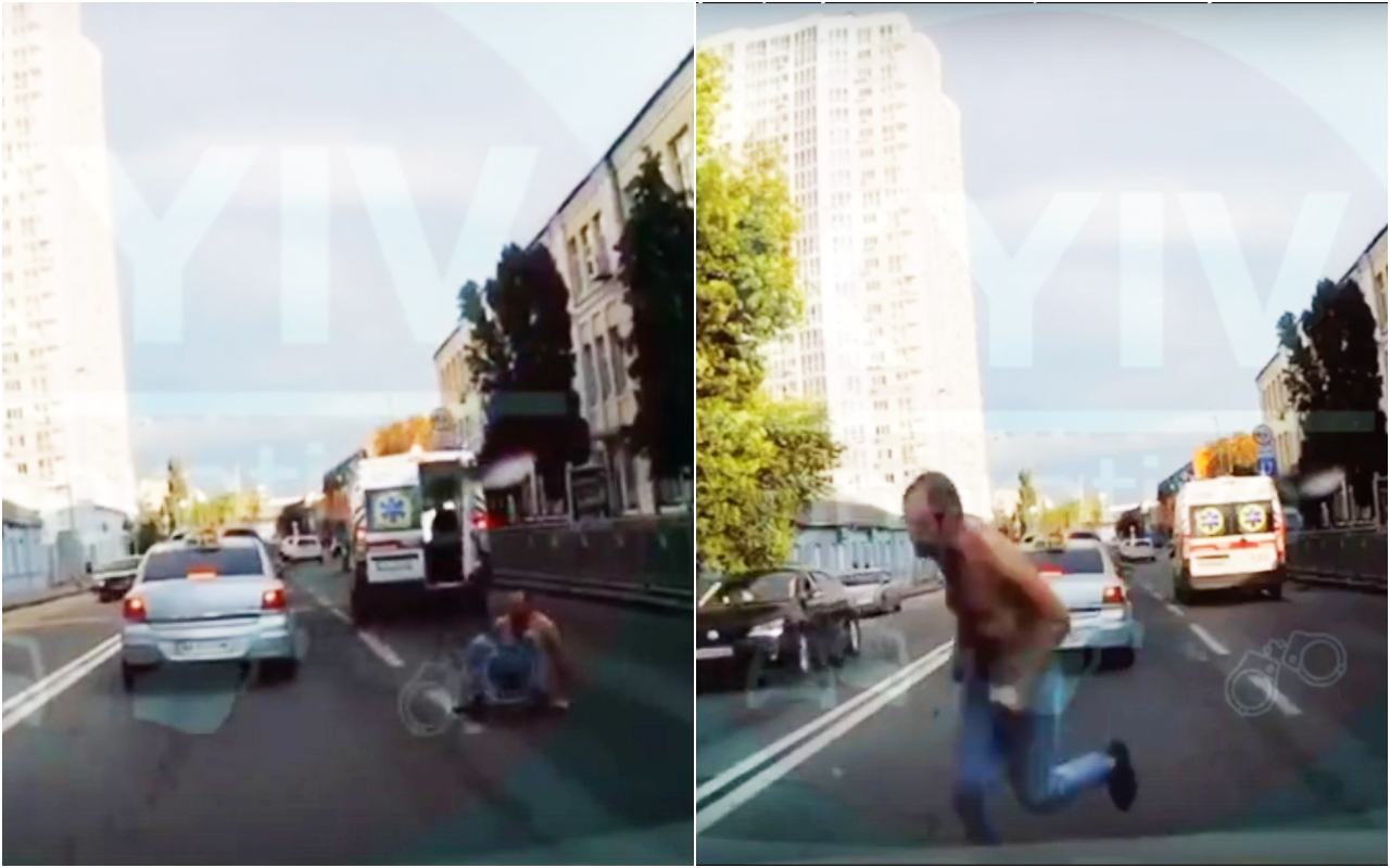 Камера видеорегистратора захватила момент, когда полуголый мужчина на ходу выпрыгнул из машины скорой помощи и убежал. Видимо, «отпустило», иронизируют пользователи соцсетей.