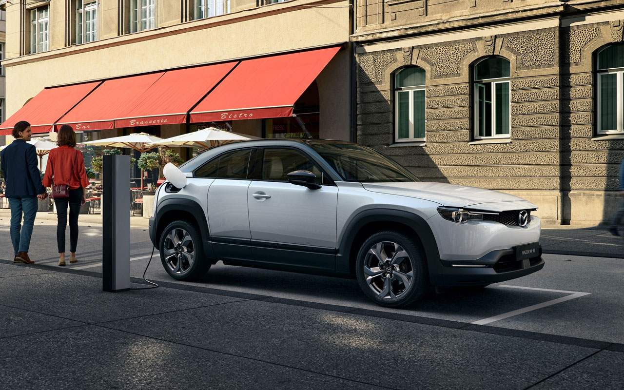 Особое внимание инженеры Mazda уделили управляемости кроссовера, сохранив у него реакции, присущие другим автомобилям марки. Комплекс использованных для этого решений получил название e-Skyactiv. Также инженеры заставили электромобиль звучать, как обычный автомобиль с двигателем внутреннего сгорания. Это не только приносит удовольствие, но и предупреждает пешеходов о приближении машины, чего требует законодательство некоторых стран.