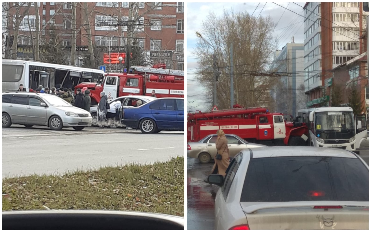 В Томске пожарная машина протаранила маршрутный автобус
