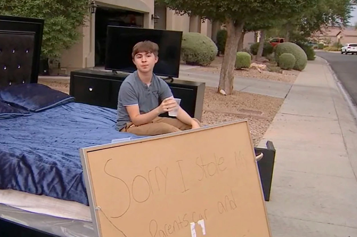 Наказали Анхеля таким образом – отец вытащил из дома его кровать и заставил мальчика несколько часов просидеть на ней перед домом с табличкой: «Извините, я угнал машину родителей и превышал скорость». А в это время устроил раздачу соседям всего имущества, которое было в комнате парнишки. Одежда, телевизор и спальный гарнитур были бесплатно отданы — таким образом отец как бы извинился перед ними за безрассудное поведение своего сына.