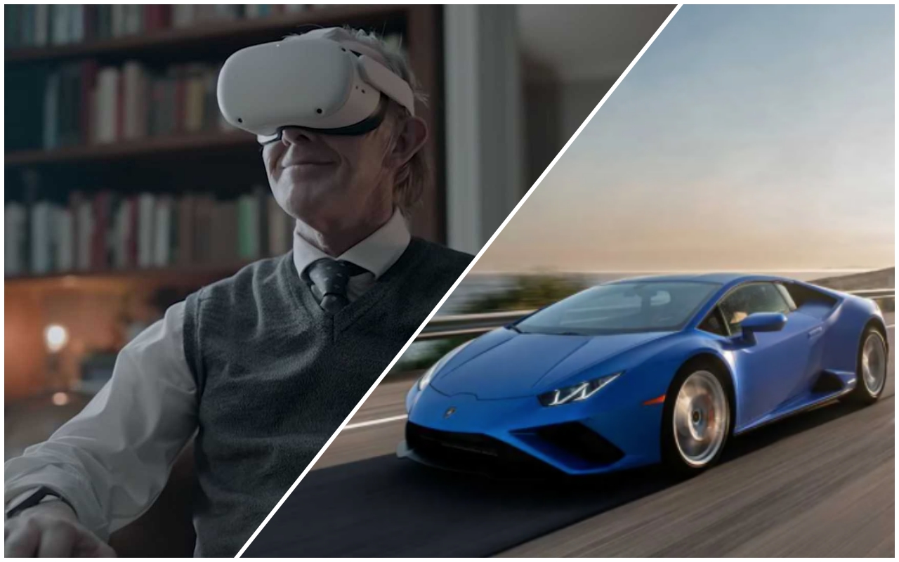 Он надевает их и — о чудо(!) — оказывается внутри суперкара Ламбо, который мчится по скоростному шоссе. Лицо мужчины освещает улыбка, которой любуется его супруга, хотя и не видит всего, что видит он.