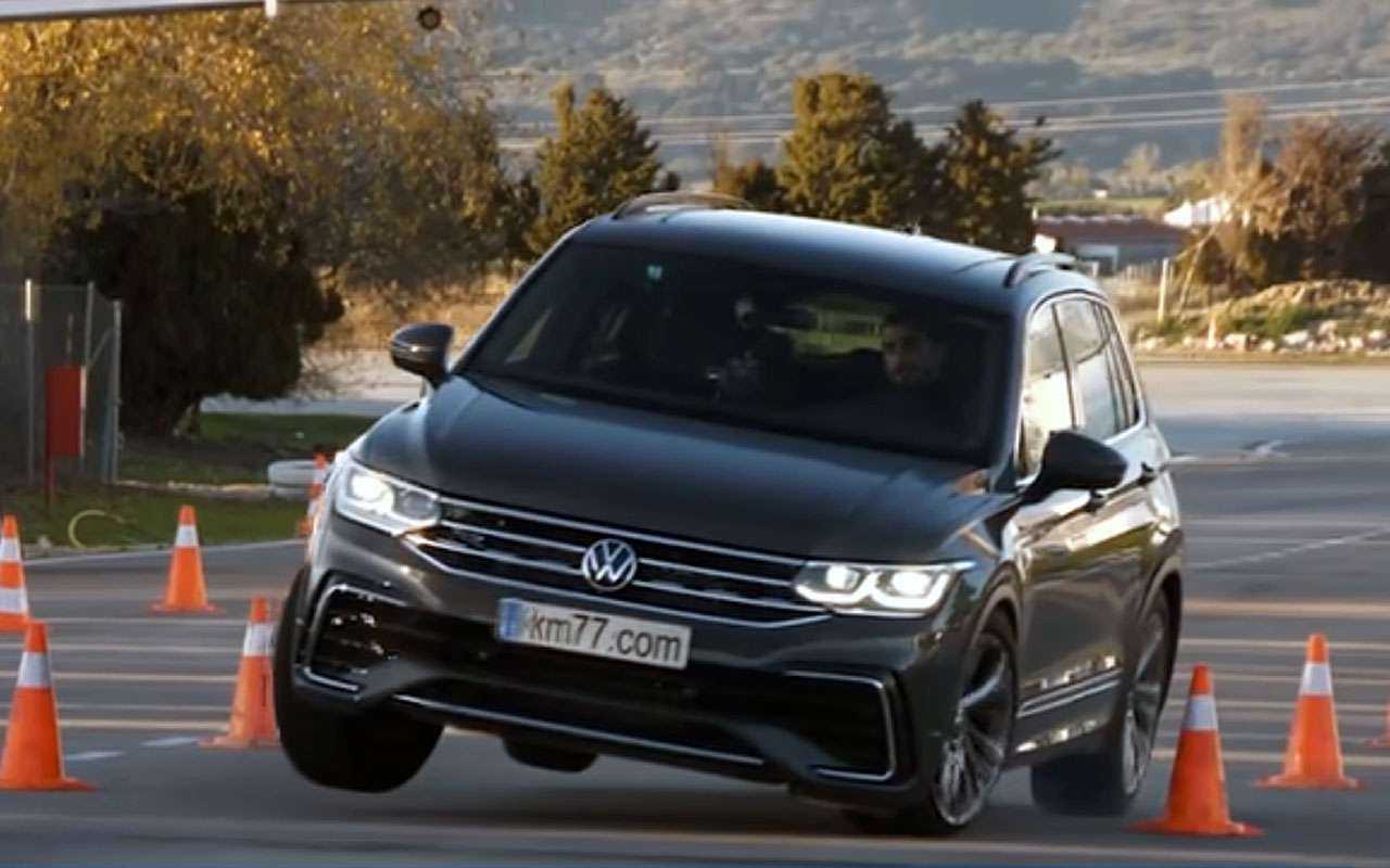 Обновленный Volkswagen Tiguan прошел испытание, называемое «лосиным тестом», когда автомобиль резко меняет полосу движения и возвращается обратно, словно объезжает препятствие. Но дьявол кроется в деталях, поэтому важнее то, как он это сделал.