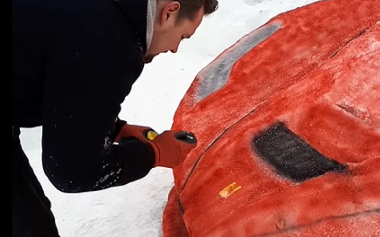 Поначалу видео Youtube-канала Storyful Rights Management подхватили национальные СМИ, а через несколько дней придумка литовцев покорила международное медиапространство: в ролике, снятом Донатой Бугьен, ее супруг в максимальных подробностях воссоздает облик суперкара Ferrari LaFerrari... из снега. В финале получившееся изваяние окрашивается экологически чистой краской.