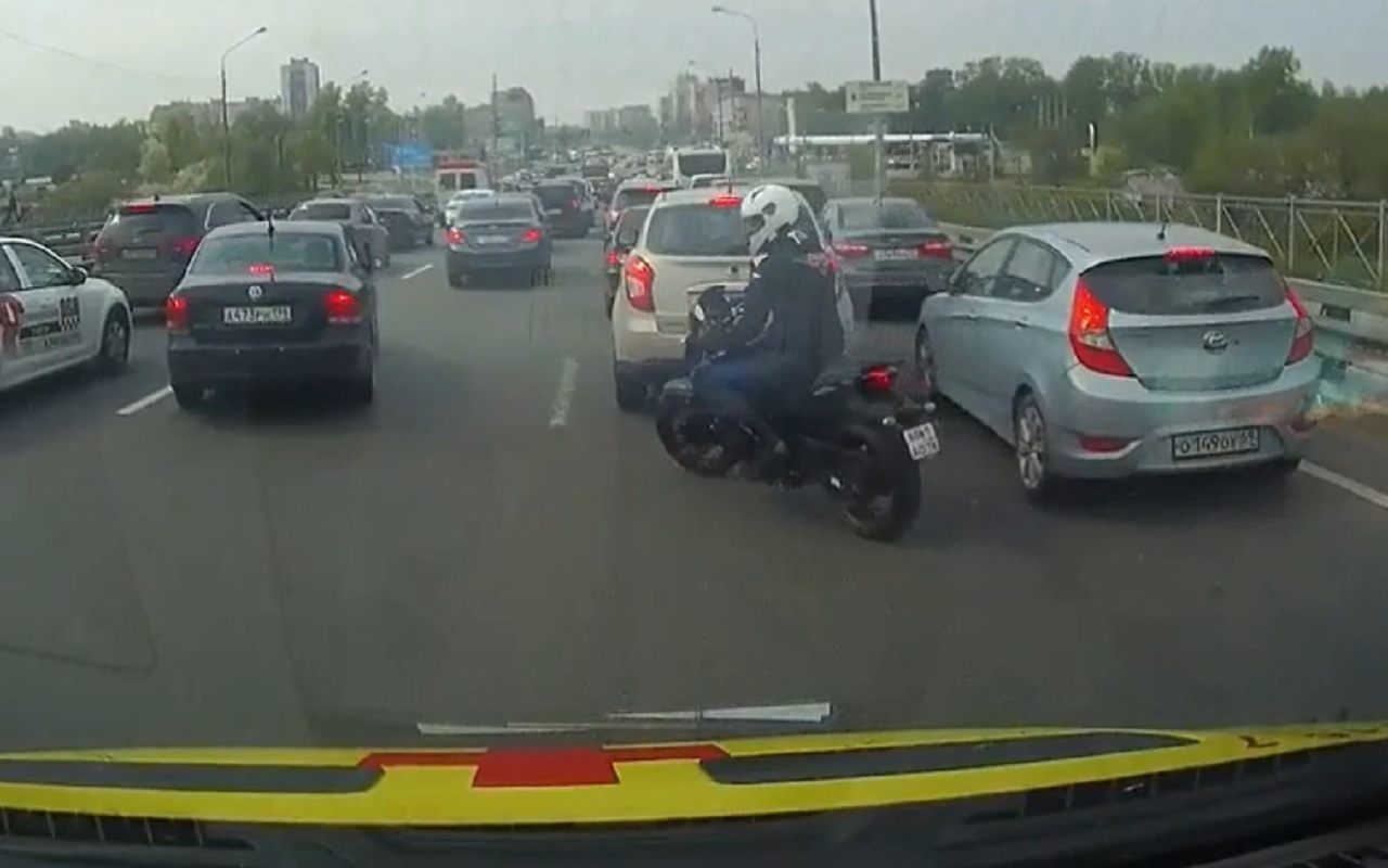Мотоциклист разогнал пробку перед машиной скорой помощи (видео)