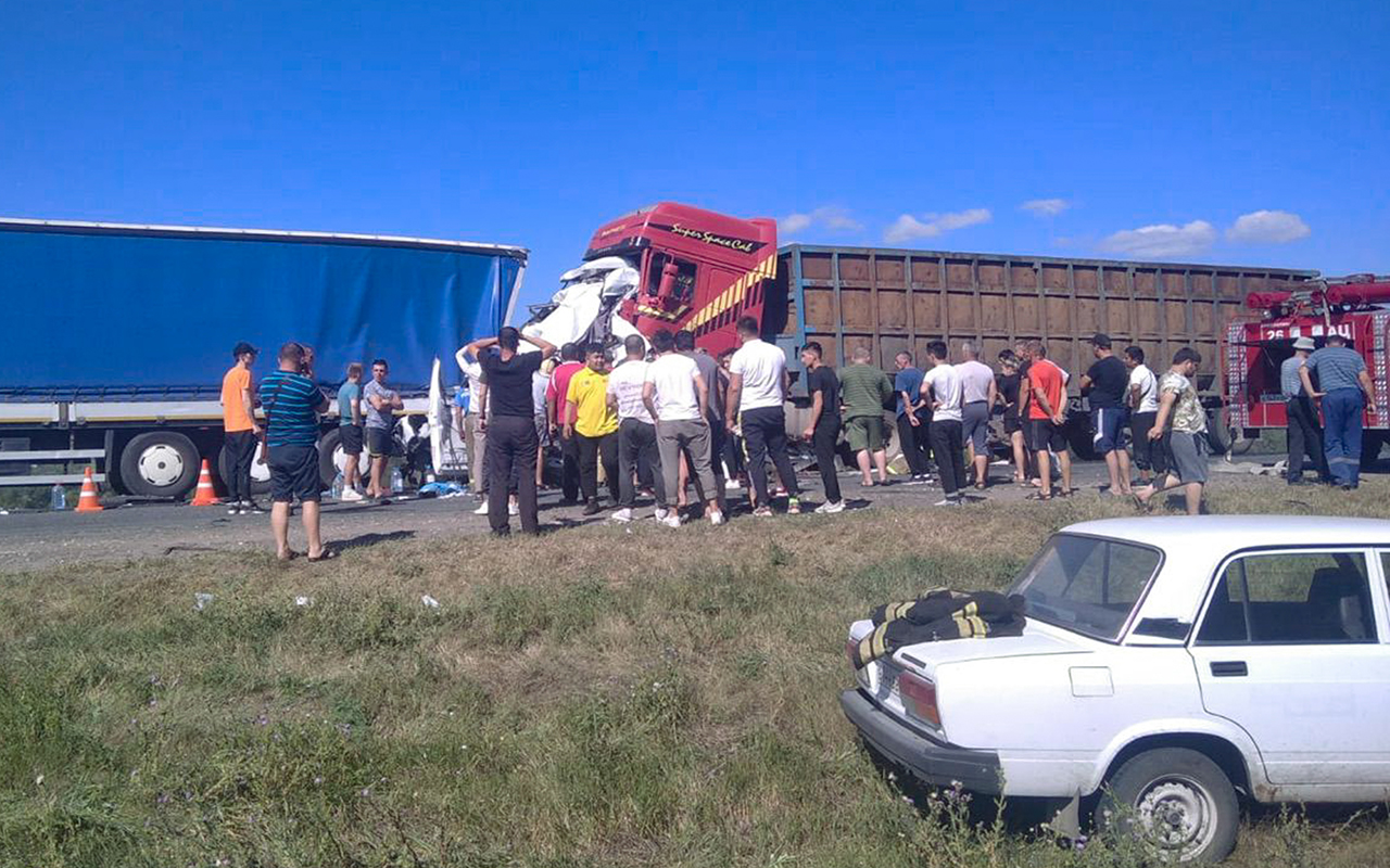 В ДТП с двумя большегрузами и микроавтобусом погибли 16 человек