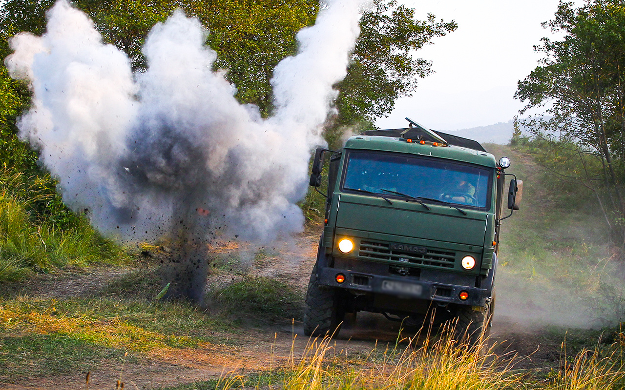 Обучение вождению ведется и на городских улицах – в одном из районов краевого центра. При этом учащиеся управляют военными тягачами повышенной проходимости и грузоподъемности КАМАЗ и Урал.