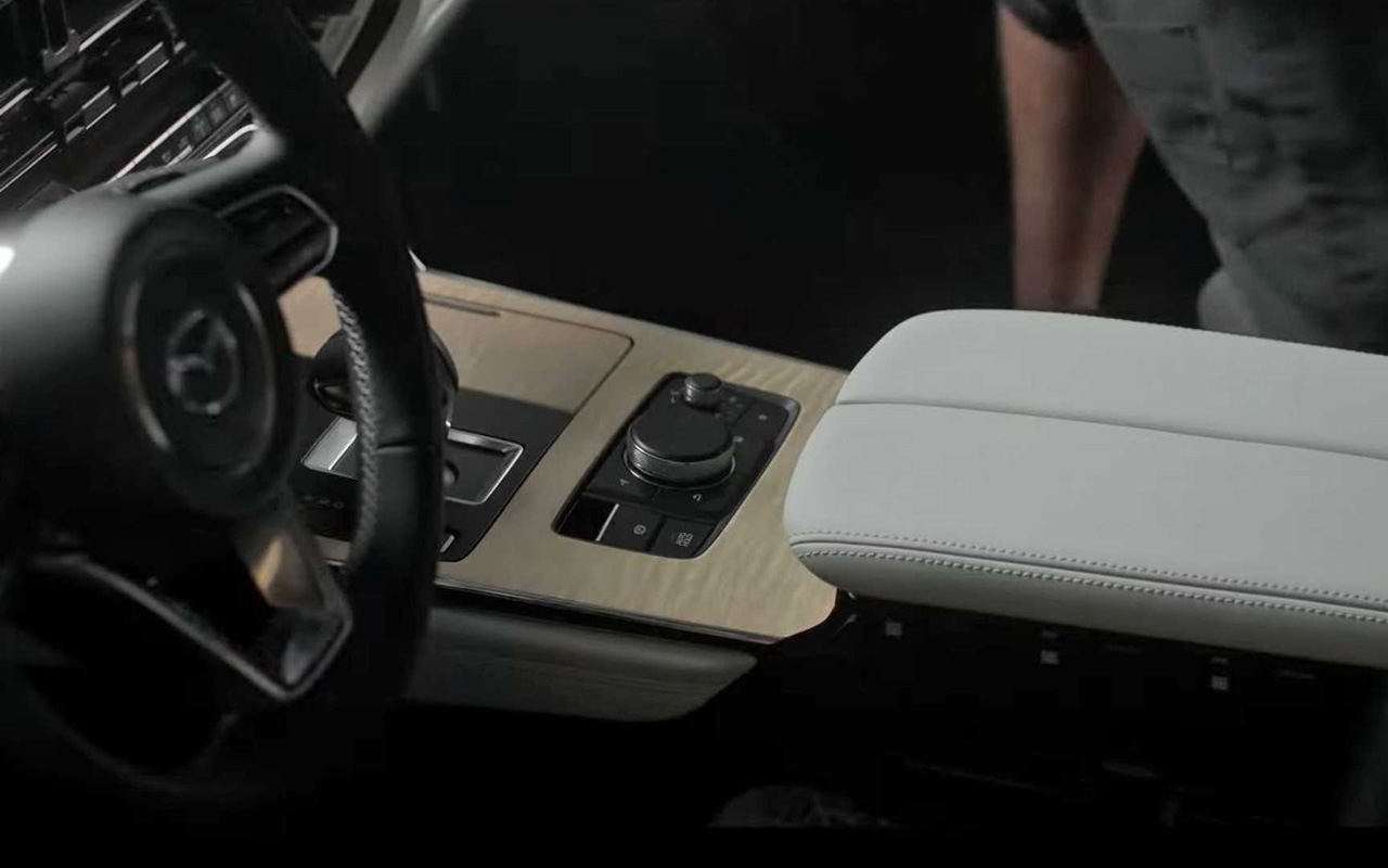 Также салон нового флагмана Mazda украшают хром и вставки под дерево светлого кремового оттенка.