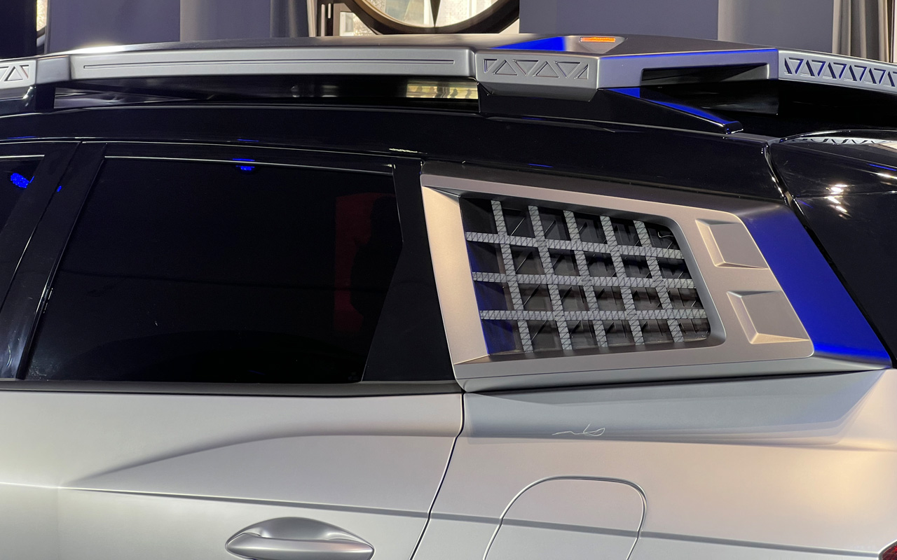 Концепткар имеет большой дорожный просвет, выпуклые крылья и окрашенные в черный цвет стойки и крышу. Благодаря необычному багажнику на крыше машина выглядит несколько футуристично.