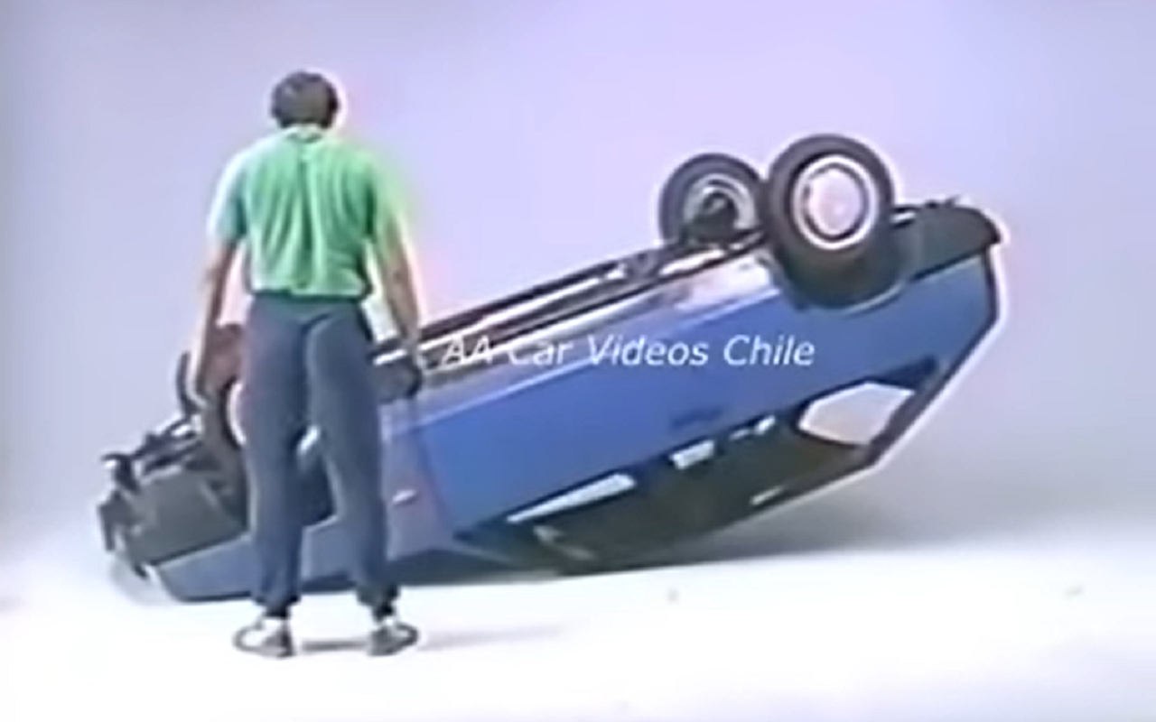 К тому моменту ВАЗ-2108 был уже известен, ведь машина прекрасно показывала себя на раллийных трассах европейских и мировых первенств. И рекламу чилийский дистрибьютор подготовил довольно острую: силач в кадре переворачивает машину вверх днищем! Потом возвращает «восьмерку» в нормальное положение, закончив, таким образом, осмотр.