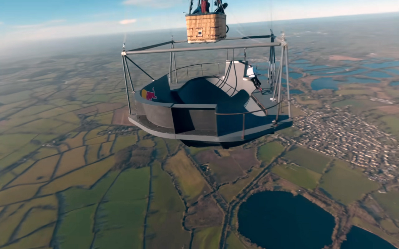 Оказывается, поднять скейт-парк в воздух на высоту более 610 метров довольно сложно. Поэтому, когда шотландский гонщик BMX Крисс Кайл захотел выполнить такой трюк, он обратился к экспертам команды Red Bull F1.