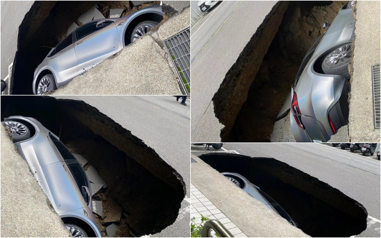Владелец новенькой Tesla в Чжубее (Тайвань) потерял свой автомобиль из-за провала. Электромобиль был припаркован на обочине дороги, а затем внезапно рухнул под землю.