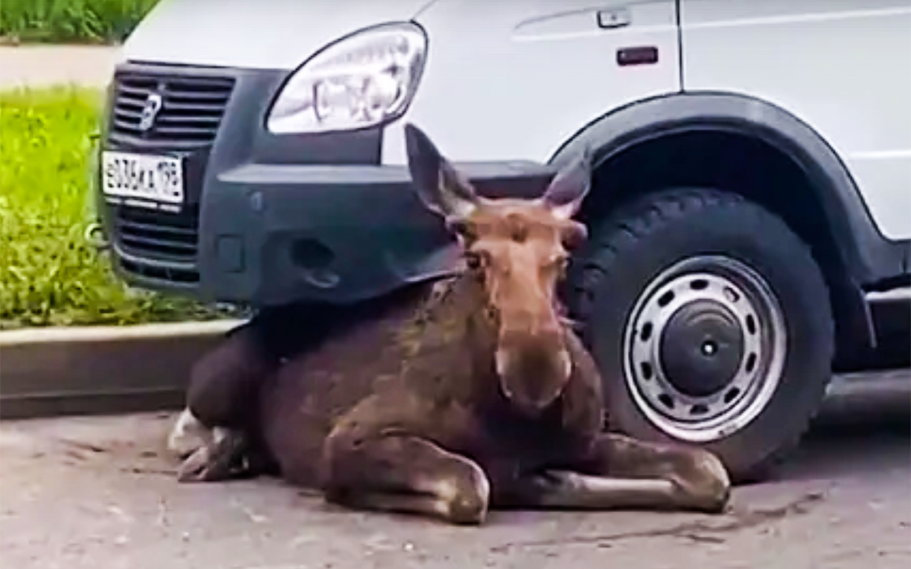 В Санкт-Петербурге лось залез под ГАЗель (видео)