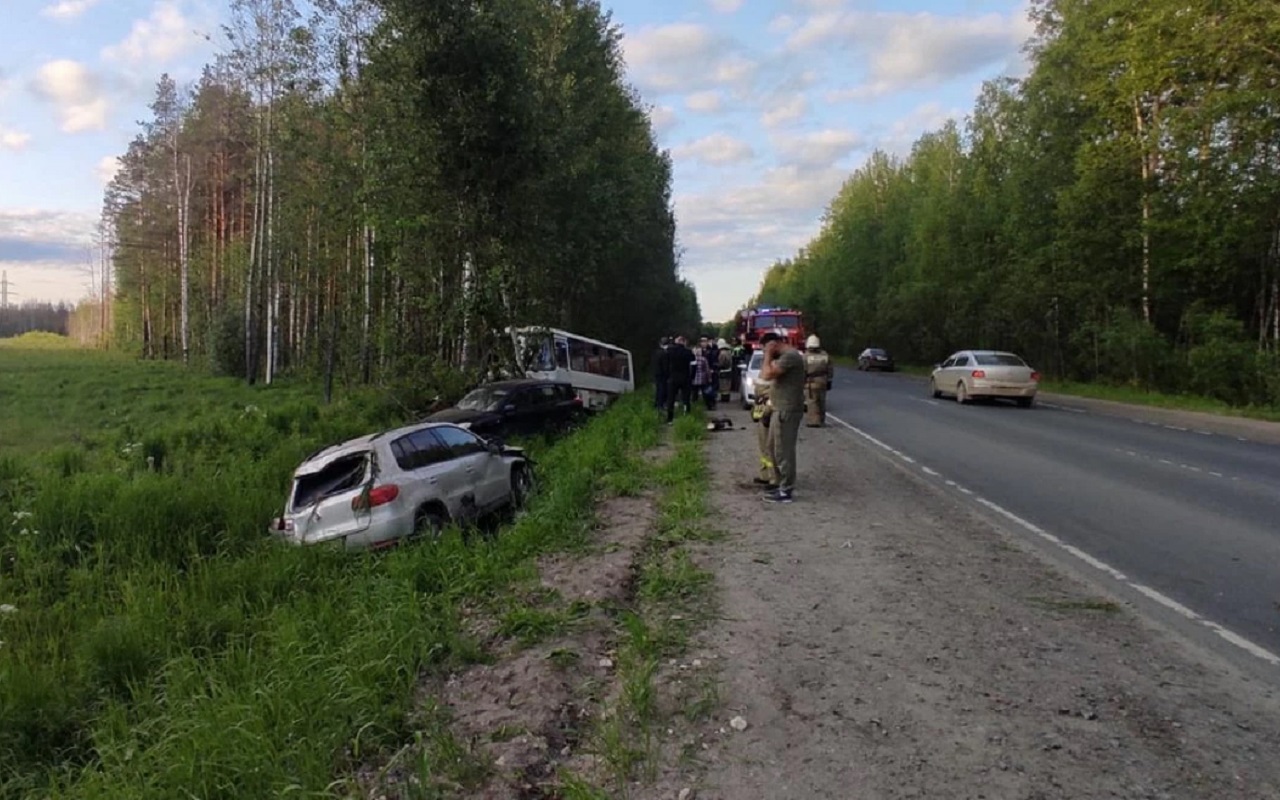 В результате машины столкнулись, после чего их отбросило на автобус ПАЗ, двигавшийся впереди в попутном направлении. Все три машины съехали в кювет.