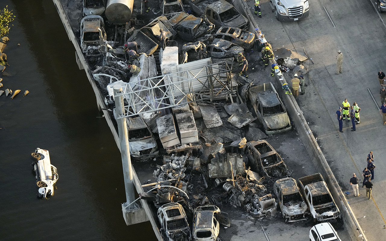 «Машины раздавлены, навалены друг на друга и охвачены пламенем. Некоторые люди вышли из машин и стояли на обочине или на крышах своих автомобилей», — передают очевидцы.