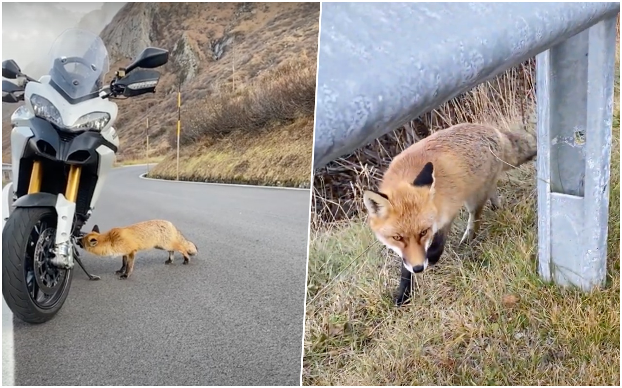 Встреча, которая завершилась почти дружбой, произошла еще в октябре, но опубликовали видео только в декабре. Только автор ролика Андреа Вензи остановился передохнуть у обочины горной дороги, как к нему подбежал рыжий лис и стал интересоваться байком, даже попробовал железного коня на вкус. Видео снято на перевале Пордой (Италия).