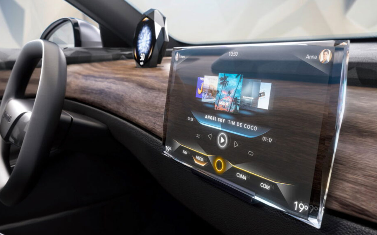 В дисплее используется самосветящаяся технология MicroLED, которая отображает информацию на абсолютно прозрачном экране. И эта технология скоро появится в премиальных автомобилях.