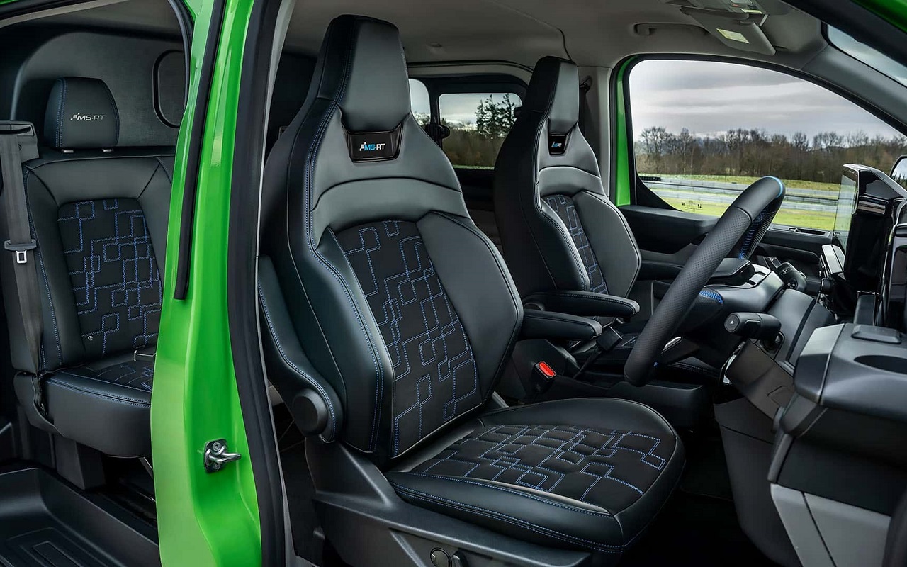 Покупатели могут выбрать цвет кузова из широкой гаммы, а в салоне располагаются спортивные сиденья MS-RT с отделкой из кожи и экокожи. В зависимости от назначения Transit может быть оснащен одним водительским сиденьем или пятью пассажирскими креслами.