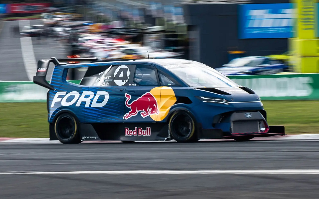 Ford SuperVan 4.2 – это сильно модифицированный фургон с полностью переработанным шасси и кузовом, обеспечивающим безупречную аэродинамику. В его распоряжении три электромотора: один на передней оси и два на задней, суммарная мощность которых составляет 1400 л. с. Для питания этих двигателей используется жидкостная 50-киловаттная аккумуляторная батарея производства STARD.