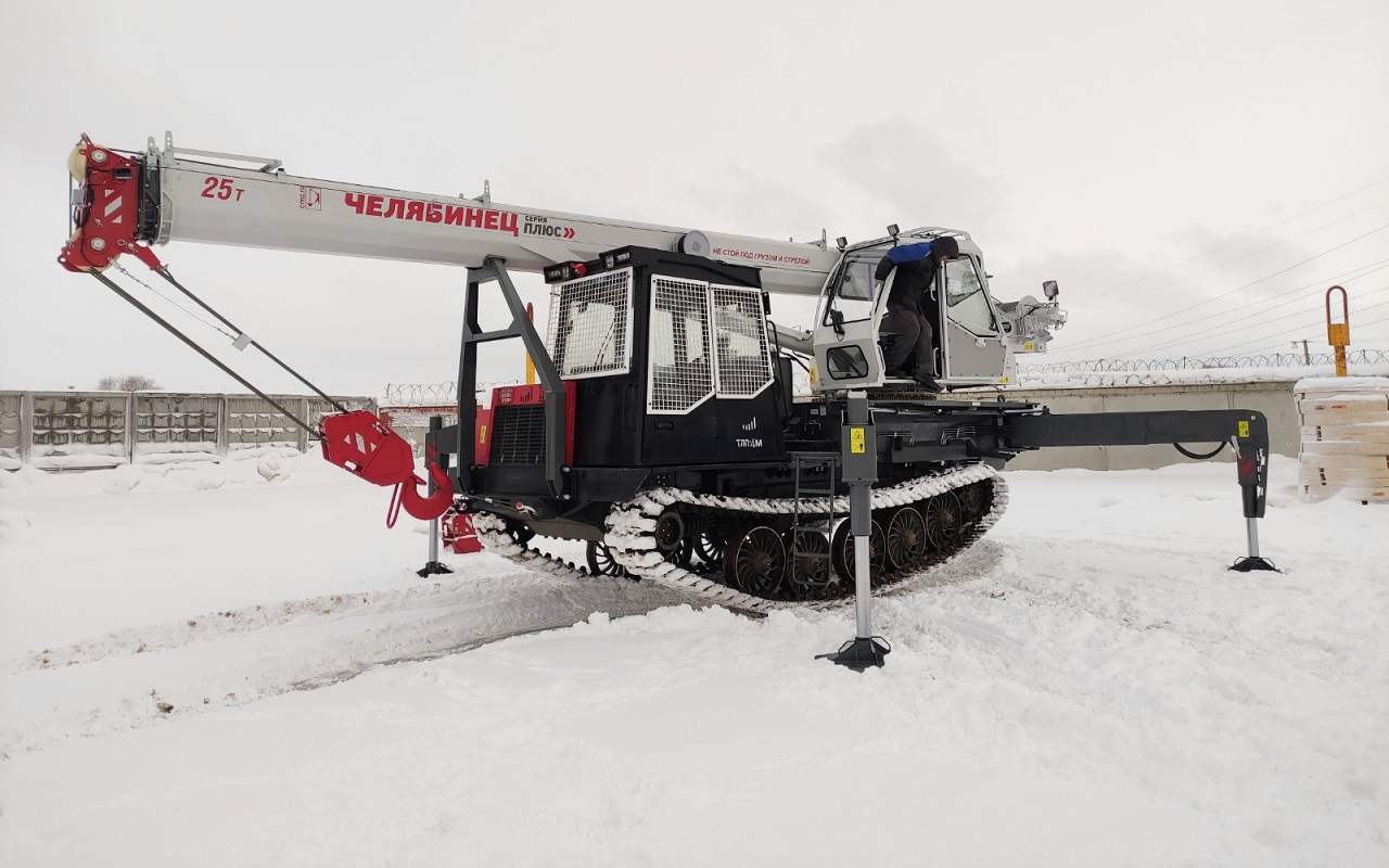 Благодаря компактным габаритам, мощному двигателю и гусеницам шириной 600 мм спецтехника способна передвигаться даже по рыхлому грунту и маневрировать на пересеченной местности. Грузоподъемность «Челябинца» — 25 тонн, а максимальная длина телескопической стрелы — 22 метра.