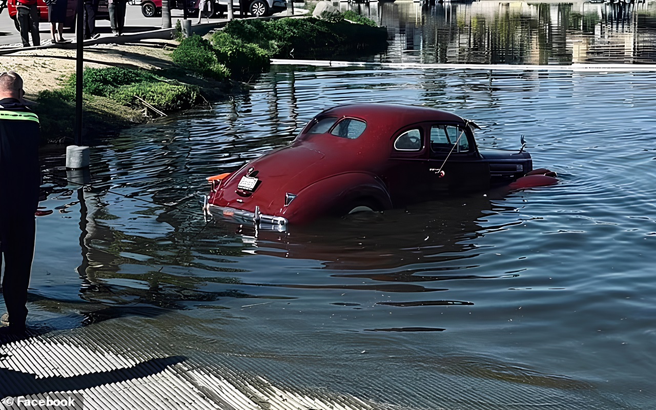 Винтажный Packard 1939 года постигла трагическая участь, когда он скатился в озеро во время фотосессии в Каньон-Лейк (Калифорния, США). Владелец на берегу наблюдал, как спасательная команда извлекала из воды его темно-бордовую классику.