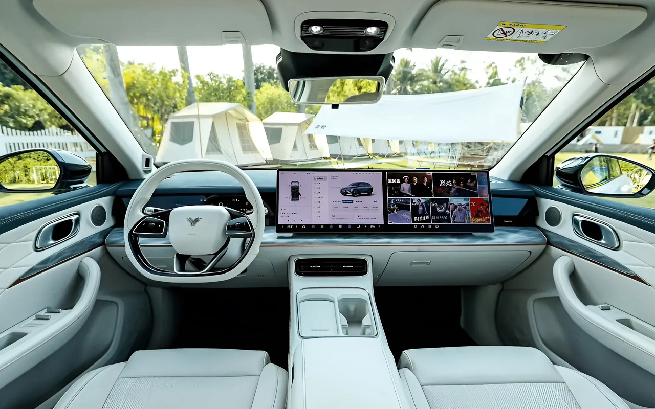 В салоне на передней панели находится большой монитор мультимедийной системы.