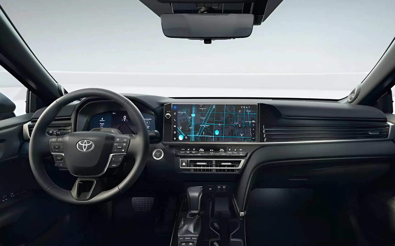 Европейская Camry, помимо топовой гибридной силовой установки, отличается от китайской версии наличием противотуманных фар. В стандартную комплектацию входит цифровая приборная панель с 7-дюймовым экраном, медиасистема с 12,3-дюймовым дисплеем, адаптивный круиз-контроль, беспроводная зарядка для смартфона и пакет систем помощи водителю TSS 3.0.