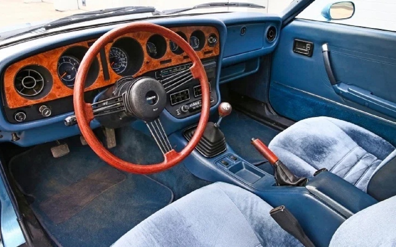 Салон отделан натуральным деревом, синим велюром, имеются также виниловые вставки, безрамочные двери, установлены электростеклоподъемники, электрозеркала и кондиционер.