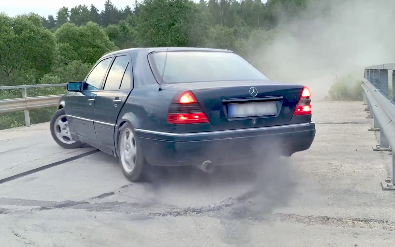 И да, именно в тачке здесь весь цимес: это видавший некоторую грязь Mercedes-Benz C180 (W202) 1995 года выпуска. Вас, конечно, рассмешат титры в начале ролика, мрачно заявляющие о «122-сильном ЗВЕРЕ». Но поверьте, скоро ваша снисходительность сменится восхищением, переходящим в восторг.