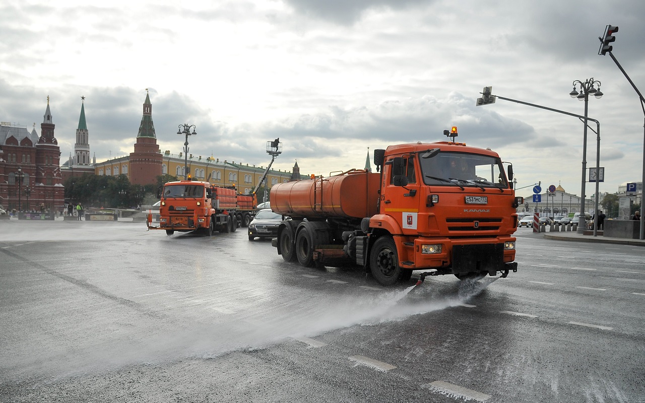 В жаркую погоду специалисты ГБУ «Автомобильные дороги» поливают дороги Москвы, чтобы предотвратить их деформацию и улучшить санитарное состояние улично-дорожной сети.