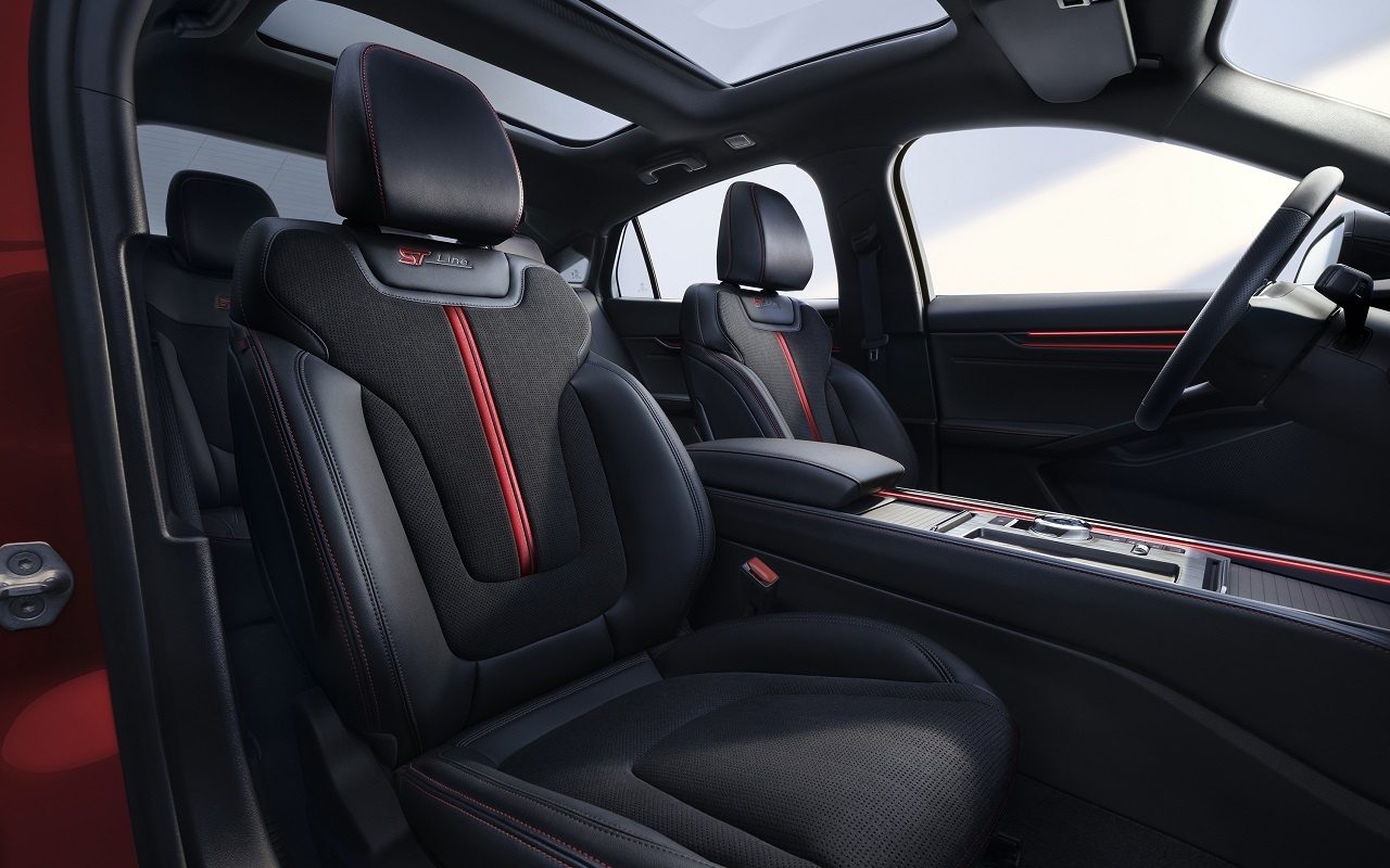 Основная особенность лифтбека – широкий 27-дюймовый информационно-развлекательный дисплей в салоне. Обычно Мондео Спорт предлагают в хорошей комплектации с климат-контролем, обогревом сидений, зеркал, заднего стекла и руля и электроприводами передних сидений. Автомобиль оснащен множеством электронных систем, включая автопарковщик и комплекс безопасности Co-Pilot360 в базовой комплектации.