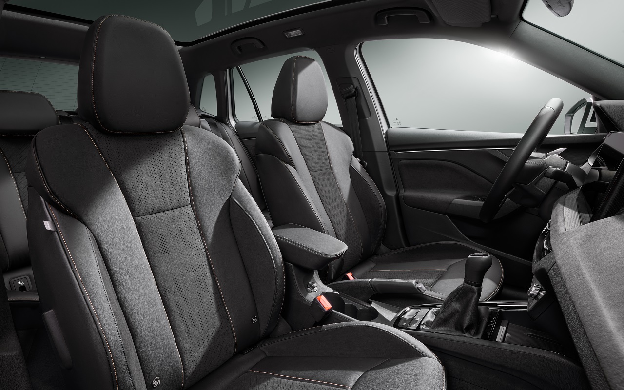 Внутри Skoda Kamiq также радует. Хотя обивка сидений тканевая, наличие кожаного руля с подогревом и черного потолка придает салону премиальности. Электронная приборная панель добавляет современности, а наличие таких ассистентов, как система помощи при старте в гору, датчики дождя и света, делает вождение более комфортным и безопасным. Безопасность обеспечивается и наличием передних и боковых подушек безопасности, оконных шторок и системы контроля давления в шинах. Система предотвращения столкновений и крепления ISOFIX для детских кресел являются стандартными и важными элементами комплектации.