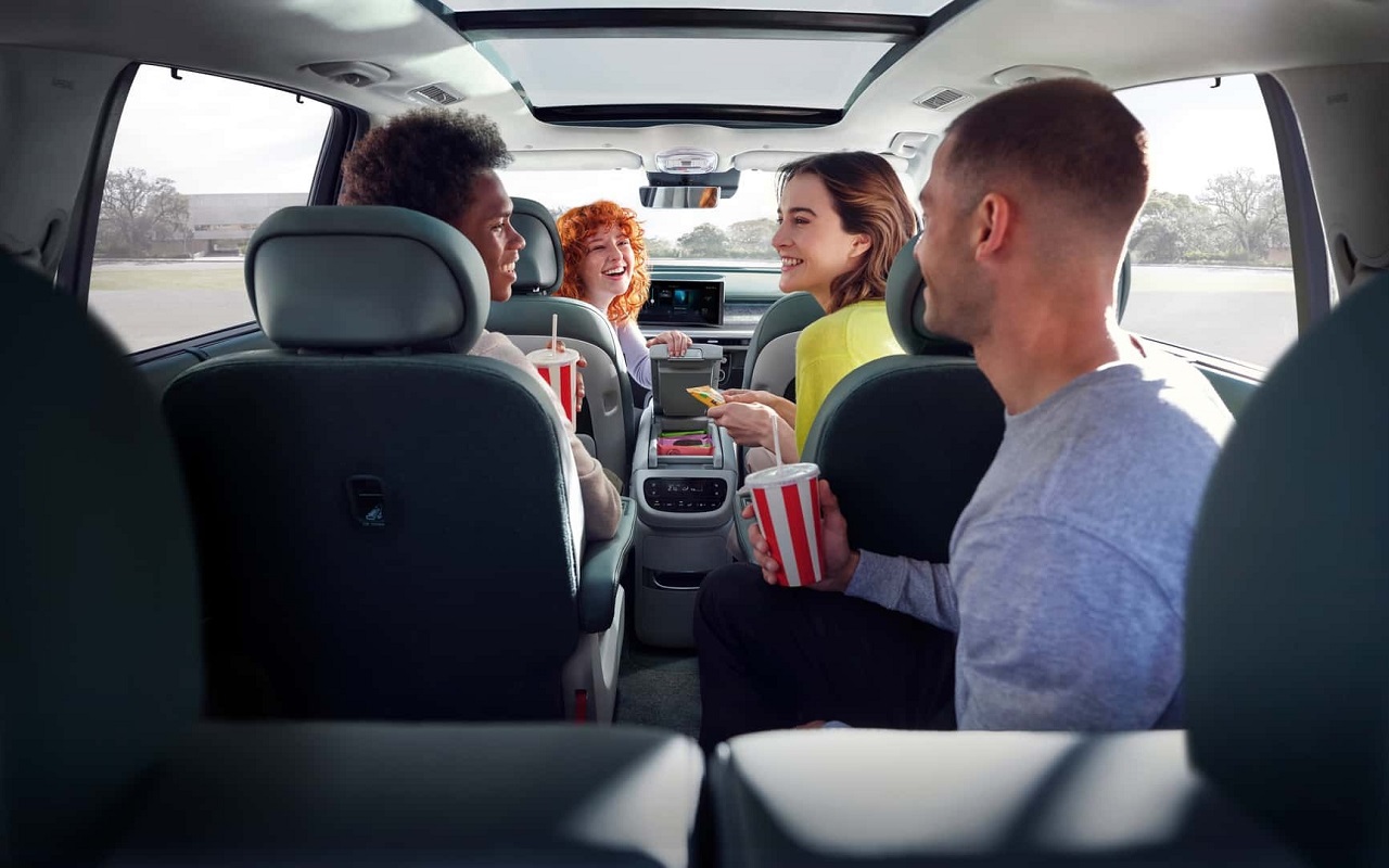 Ioniq 9 предлагает достаточно места для шести или семи человек, в зависимости от конфигурации. Второй ряд сидений оборудован уникальными креслами Hyundai Relaxation Seats с функцией Dynamic Touch Massage, что добавляет комфорта в длительных поездках. Все сиденья в первом и втором ряда полностью раскладываются, а второй ряд может поворачиваться, позволяя пассажирам общаться лицом к лицу, когда автомобиль стоит.
