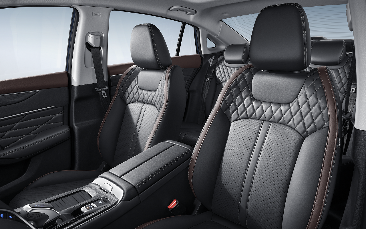 Комфортабельный салон включает сиденья с перфорированной эко-кожей, мультифункциональный руль, цифровая приборная панель с диагональю 12,3 дюйма, мультимедийная система с 10,25-дюймовым сенсорным экраном и качественной акустикой Jamo (9 динамиков), беспроводная зарядка для смартфонов и охлаждаемый бокс в центральном подлокотнике.