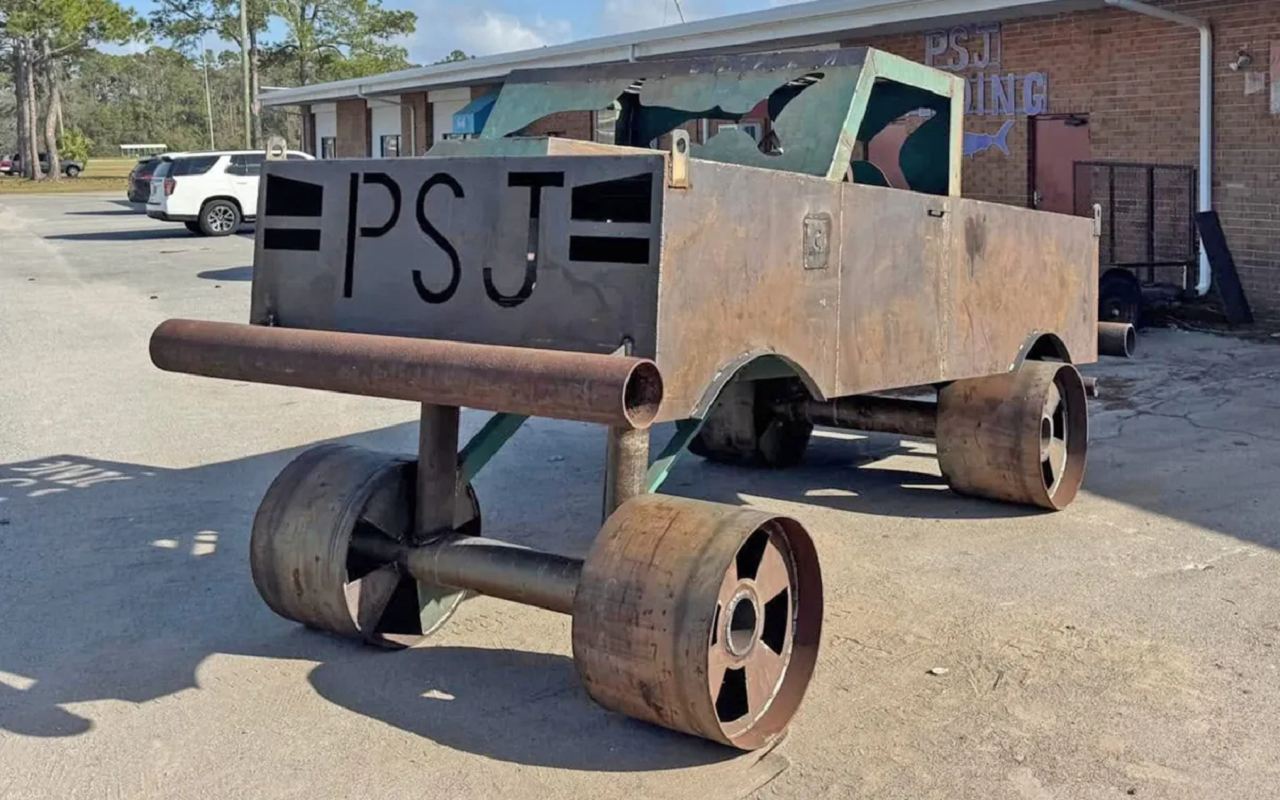 Ученики одной из школ расположенного на побережье Мексиканского залива городка Порт-Сент-Джо создали замечательный пикап (хотя казалось бы, куда еще замечательнее, чем пикап с Nintendo). Как вы уже могли догадаться, машина не предназначена для перемещения по дорогам. И вообще по чему-либо. Так для чего нужна эта громадина?
