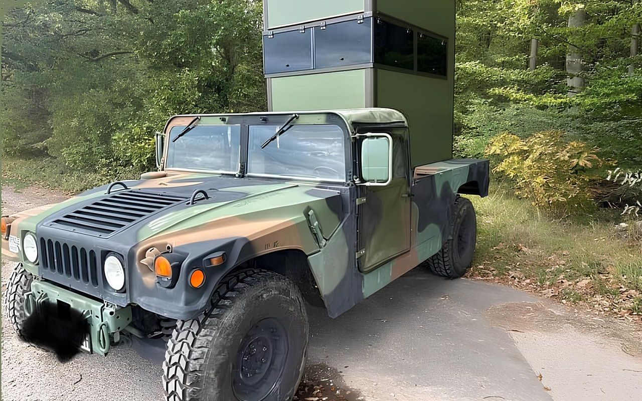 В основе камуфлированной вышки на колесах – Hummer H1 в отличном состоянии. Это модернизированная версия M1123 с усиленной конструкцией. Согласно описанию, машина 1990 года выпуска была полностью восстановлена в 2009-м с заменой двигателя, радиатора, агрегатов и коробки передач.