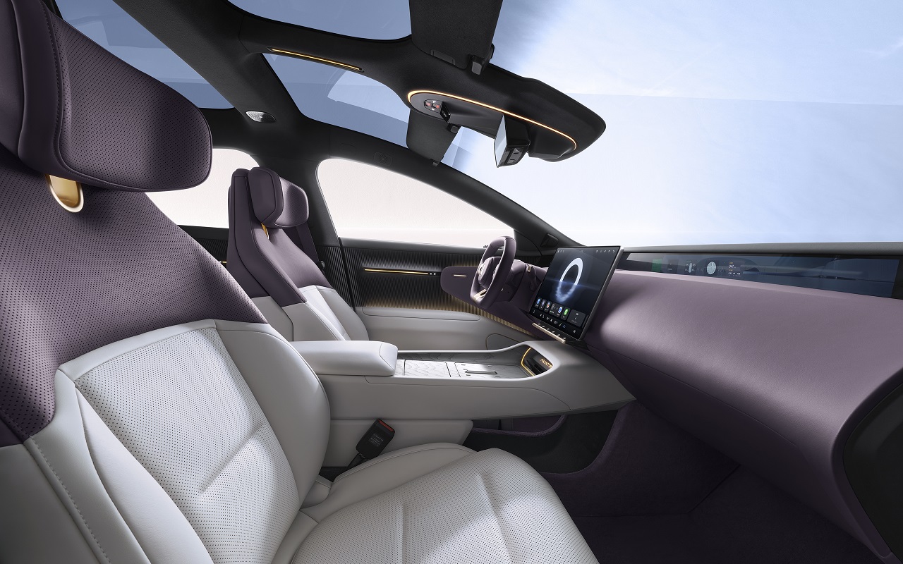 Avatr 12 будет доступен в семи цветах, включая эксклюзивный матовый фиолетовый. Для покупателей предложены три варианта отделки салона: светлый, темный и комбинированный. Также имеется информация о том, что для модели будет доступно три комплектации.