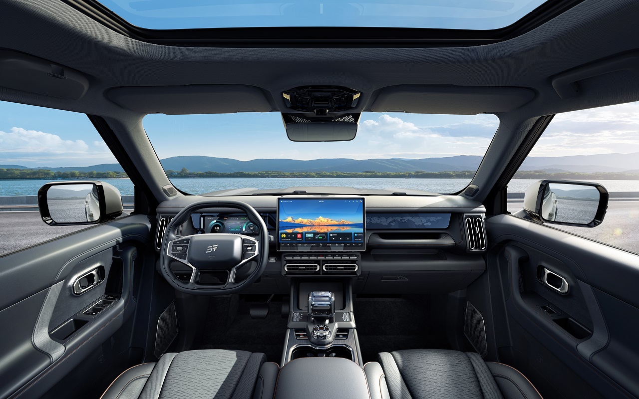 Для Т1 заявлено два варианта двигателя, но базовый агрегат 1.5 появится позже, и с ним Jetour будет только переднеприводным. С трансмиссией 4×4 сочетается 245-сильный турбомотор 2.0 с 8-ступенчатым гидроавтоматом. Он спокойно переносит долгую езду под нагрузкой – прекрасно для бездорожья.