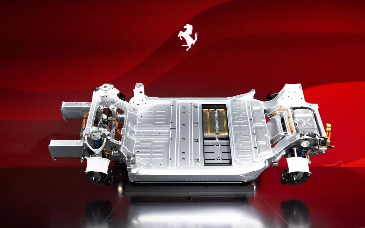 Правда, 9 октября не стало, как планировали, датой презентации готового концепта – вместо него ребята из Маранелло опубликовали фотографии шасси с интегрированным блоком аккумуляторов. Их емкость в 120 кВтч должна обеспечить запас хода на 530 км. Особенности показанной платформы – гасящий шумы и вибрации задний подрамник (впервые в истории Ferrari) и активная подвеска, как у Purosangue и F80.