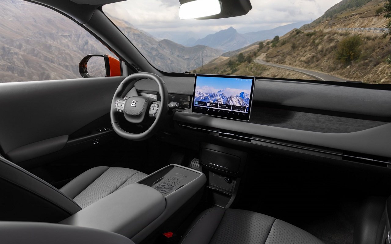 Кроме названия, с прежним i-Joy, переименованным из Dongfeng Е3 (или Seres 3) новую машину ничего не связывает. Габариты новинки – 4306 х 1868 х 1645 мм. В движение кроссовер приводит электромотор мощностью 163 л.с., а полного запаса батареи хватает на 471 км. Зарядка с 30 до 80% занимает 18 минут. Разгон до 100 км/ч – 8 секунд. Центральная деталь интерьера – дисплей 12,8", выполняющий роль информационного и управленческого центра.
